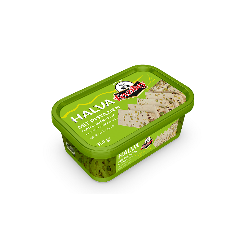Ber-na Group Fevzibey güvencesiyle, Fevzibey Fıstıklı Tahin Helva 350gr özel ambalajda satışa sunulmuştur.