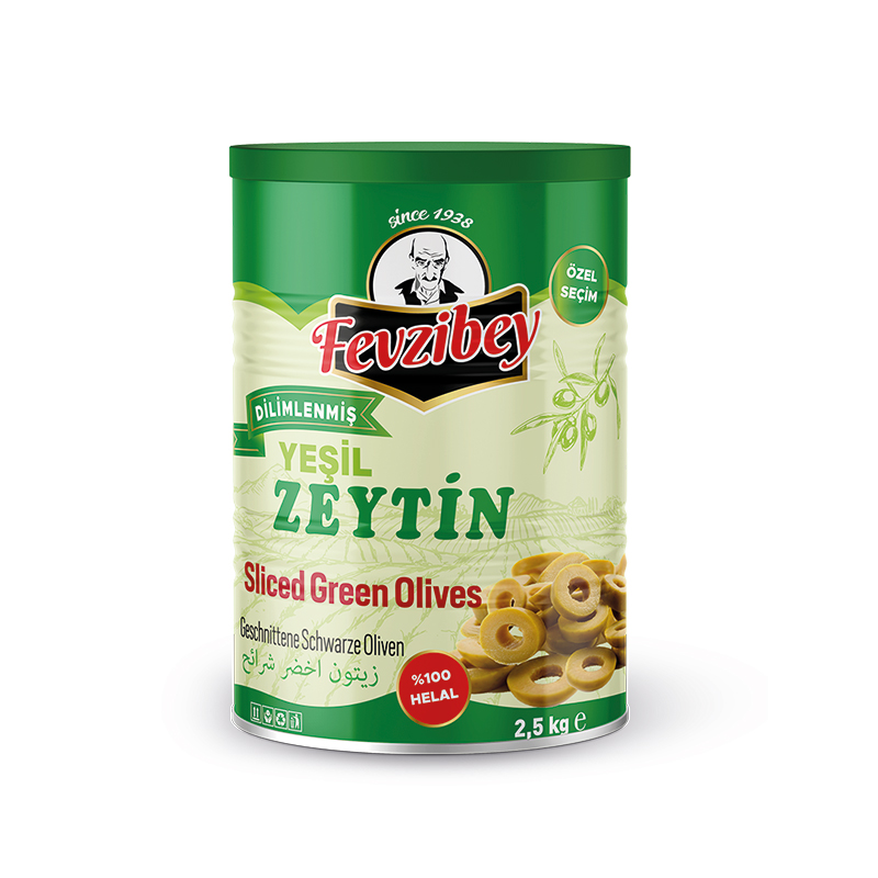 Ber-na Group Fevzibey güvencesiyle, Dilimlenmiş Yeşil Zeytin teneke kutusunda satışa sunulmuştur. Fevzibey Dilimlenmiş Yeşil Zeytin kahvaltıda, yemeklerde, salatalarda, soslarda, unlu mamullerde pizza ve sandviçlerde, doğrudan tüketilebilir.