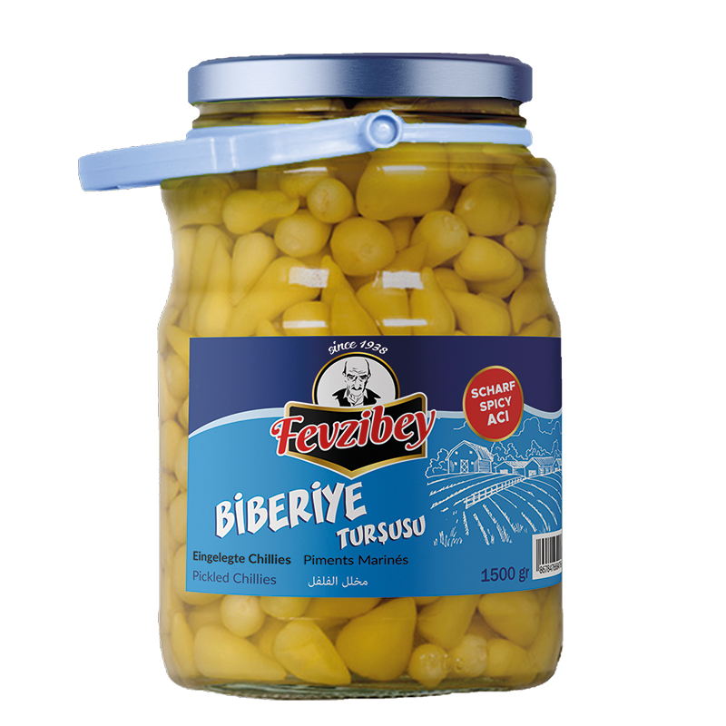 Ber-na Group Fevzibey güvencesiyle, turşudan ve acıdan vazgeçemeyenler için  Biberiye Turşusu cam kavanozda satışa sunulmuştur.