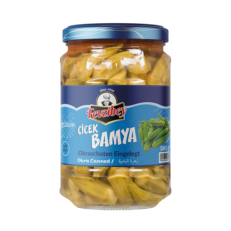 Ber-na Group Fevzibey güvencesiyle, Türk Mutfağının eşsiz lezzetlerinden Çiçek Bamya cam kavanozda satışa sunulmuştur.