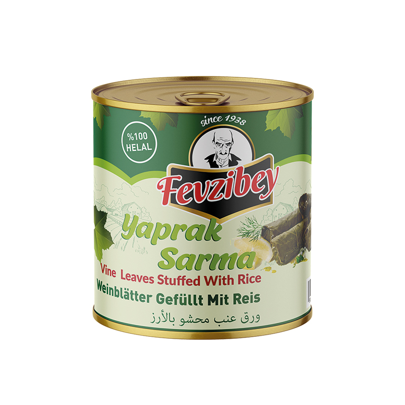 Ber-na Group Fevzibey güvencesiyle, Türk Mutfağının eşsiz lezzetlerinden incecik damarsız zamanında hasat edilen salamura yapraklardan hazırlanan Yaprak Sarma konserve kutusunda satışa sunulmuştur.