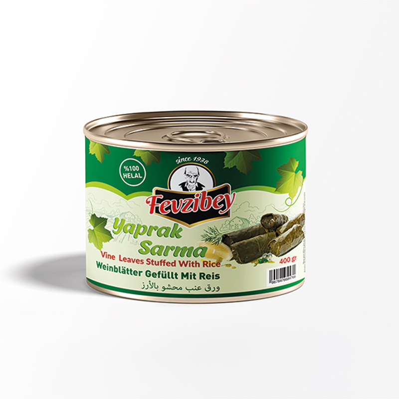 Ber-na Group Fevzibey güvencesiyle, Türk Mutfağının eşsiz lezzetlerinden incecik damarsız zamanında hasat edilen salamura yapraklardan hazırlanan Yaprak Sarma konserve kutusunda satışa sunulmuştur.