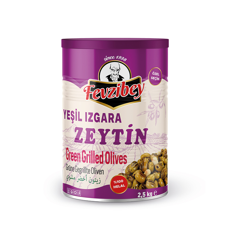 Ber-na Group Fevzibey güvencesiyle, Yeşil Izgara Zeytin teneke kutusunda satışa sunulmuştur. Fevzibey Yeşil Izgara Zeytin kahvaltıların vazgeçilmezlerindendir.